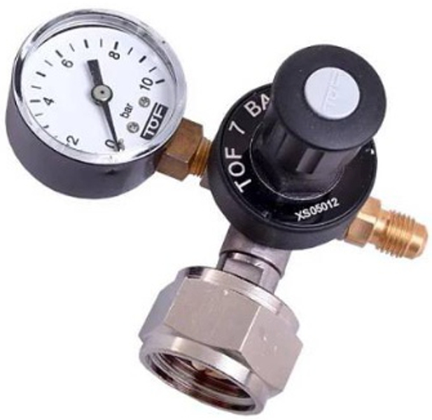 Redukční ventil určený k připojení tlakové láhve k výdejníku, který umožňuje výdej perlivé vody. Ventil je opatřen matkou k připojení na 3/4" nebo 1/2" závit. Na ventilu se nastavuje výše tlaku CO2, který ovlivňuje množství bublinek v perlivé vodě. Ideální nastavení je na hodnotě 3,8.